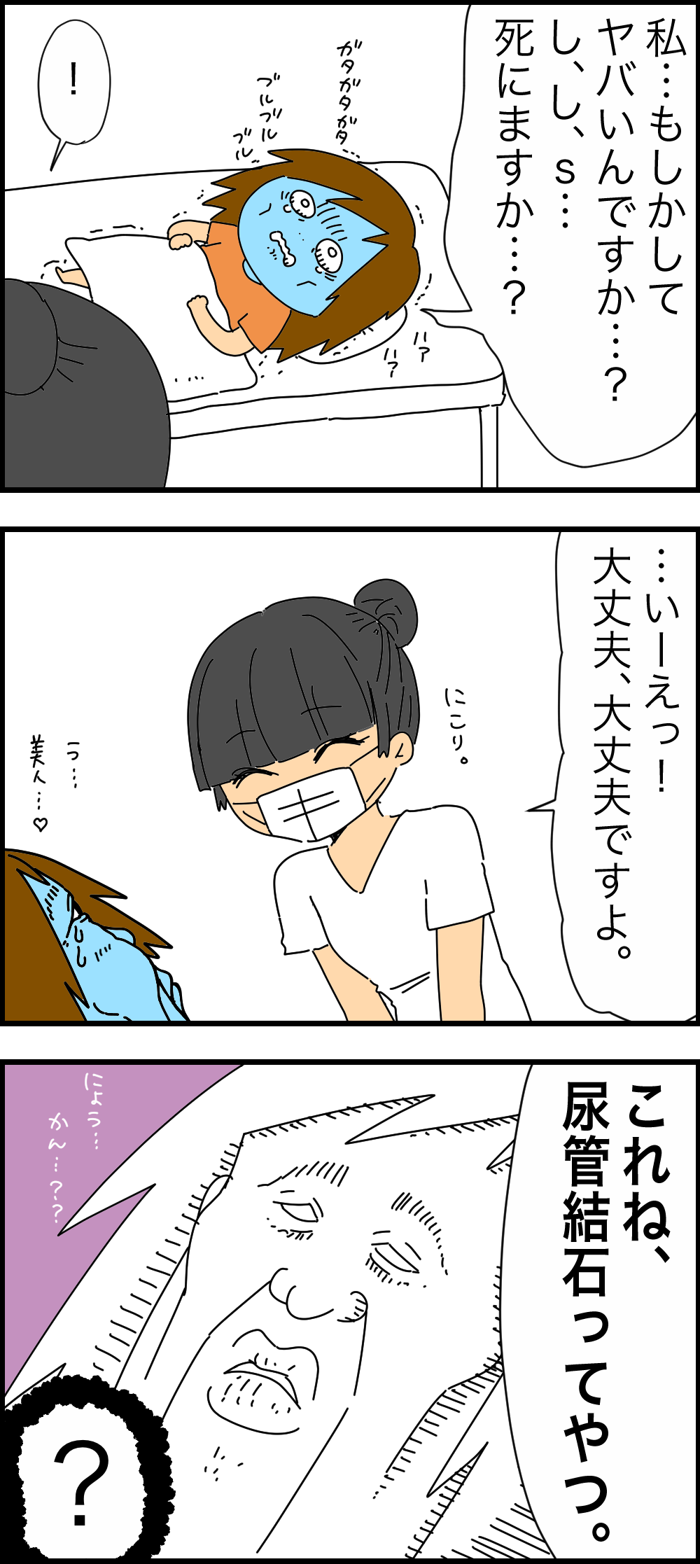 2022年09月18日 人生で初めて救急車を呼んだ時の話…9 前回の話はこちらから⬇️ 尿管…結石…?尿路結石は聞いたことある。が、尿管結石とな?あと先生めっちゃ可愛くてさ、「いーえっ!」って言ってくれた時キュンとしたわ…マスクしてたけどそれを貫通するとても優しい笑顔やった…☺️(ニチャ…)次の話はこちらから⬇️ 今までの話はこちらから⬇️今年も始まりました!推しブログを投票するアレ~!もしワニシックスが推しだぜ!!って方がいらっしゃいましたらめっちゃ励みになりますのでよろしくお願いします☺️✨こちらクリックでページに飛びます⬇️人気ブログランキングにほんブログ村 「人生で初めて救急車を呼んだ話一覧」カテゴリの最新記事 < 前の記事次の記事 > コメント コメント一覧 (24) 1. 名無し 2022年09月18日 21:36 石は確かに痛いって聞くから……辛いんだろうな 0 ワニシ がしました 2. 名無し 2022年09月18日 21:45 尿管結石って女性でもなるんですね( °_° ) 0 ワニシ がしました 3. あらた 2022年09月18日 21:52 ついに病名判明!! 何人か結石言ってた人いましたね〜 次は何センチか何個出てくるかですね 0 ワニシ がしました 4. 名無し 2022年09月18日 22:02 私も去年、尿管結石で救急車呼びました…。痛いですよね(-_-;) 個人的に陣痛より痛かった… 0 ワニシ がしました 10. うちなんちゅ 2022年09月19日 00:37 >>4 えぇっ!! 陣痛より痛いのですか!?😱💦 陣痛を5回経験した私、これ以上の痛みは無いと思ってました… それよりも痛いなんて… 0 ワニシ がしました 11. 名無し 2022年09月19日 08:03 >>10 書いた名無しさんではないですけど… 看護師の家族が言うには赤ちゃんは大きいけど丸に近い形しているし産道は広がるように出来ているけど尿管は元々水分しか通るように出来ていないし結石は硬いし物によったら角があるのでめちゃ痛いそうです 横から失礼しました 0 ワニシ がしました 18. 名無し 2022年09月20日 00:22 >>4 まったく同じことを同僚が言ってました! 陣痛はK点ギリギリを執拗に責めてくるけど、尿管結石はK点超えてきたと ワニシさん大変でしたね…((((;゚Д゚)))) 0 ワニシ がしました 5. もさねこ 2022年09月18日 22:10 あ、尿管結石でしたか😅男性の方がなりやすいって聞くけど女性でもなりますよね。(男性は7人に1人、女性15人に1人とか?)尿管結石は一度なると再発しやすいとも聞きますが大丈夫なんでしょうか?腰も痛いし、利尿剤で出したり(これがまた痛いらしい)大きいと振動で破壊とか最悪手術もあるとか。うちの兄や知人が大変だったのを覚えてます。 0 ワニシ がしました 6. おばば 2022年09月18日 22:15 ゴッスンの話、気になり過ぎてワジワジします。 でも今回の話もまたさらに気になり、脳がよじれそうなので、ワジワジの二乗で待っていますよ〜 0 ワニシ がしました 7. 名無し 2022年09月18日 22:41 草ァ! 0 ワニシ がしました 8. 名無し 2022年09月18日 23:36 なんと、尿管結石だったんですね💦 それは痛い😵💦💦 でもその痛みを我慢しなくてよかったです! 痛みで失神しそうになりますけど、気づかず水腎症、腎盂腎炎に至って敗血症性ショックで搬送という方も結構います。(高齢者ですが😂) 生活習慣の見直しが基本になりそうですね(笑) 0 ワニシ がしました 9. かおちゃん 2022年09月18日 23:51 ワニシちゃん怖かったねー💦 今は無事なんよね?! 彼氏君のいない夜で不安だったでしょう。 にゃんこたちもお留守番しててくれて 賢かったよー。 もちもちろんワニシちゃんに 投票しましたぜい❣️ 0 ワニシ がしました 12. 名無し 2022年09月19日 09:59 1に戻って見たら、ちゃんと晩御飯が寿司と唐揚げだったから思わず肉ぅ…って声が漏れた。 体質とか要因が他にあるかもですけど、肉がとどめ刺した感じですね… 相当な痛みの中、猫ちゃんや周りに気を回して救急車を待ったワニシさんに感服です。 0 ワニシ がしました 13. kyakya 2022年09月19日 10:33 ダンナは小さいのが何個も出てきたと言ってたけど かなり痛かったっぽい←他人事www 0 ワニシ がしました 14. 名無し 2022年09月19日 11:53 いつも楽しく読ませていただいてます😆✨ 救急車なんて不穏なワードが出て来て追って読んでたんですがやはり結石でしたか💦💦 痛いみたいですよね…💦私の義母は過去に同じ様な経験して痛みによるPTSDやパニックからお薬飲んでました💦 体自体へのダメージはそこまででも無いとは言え、そのくらい痛くて辛いんで怖かったですよね💦 ワニシさんお疲れ様です💦 0 ワニシ がしました 15. けたこ 2022年09月19日 14:02 やはり尿路結石でしたか 腎臓から膀胱に石が落ちてこないと 腎臓には痛覚がないので周りの背中やお腹が痛くなるんだそうです 小さいものなら水分で流してしまえるみたいだけど 謎の腹痛と背中や腰の痛みでびっくりしますよね 私はなったことはないのですが飼い猫が冬場になっちゃいまして おしっこしにくそうにしてる段階で病院に行ったので血尿にもならず腎臓に異常が出なくてセーフでした でもお財布はアウト ワニシさ